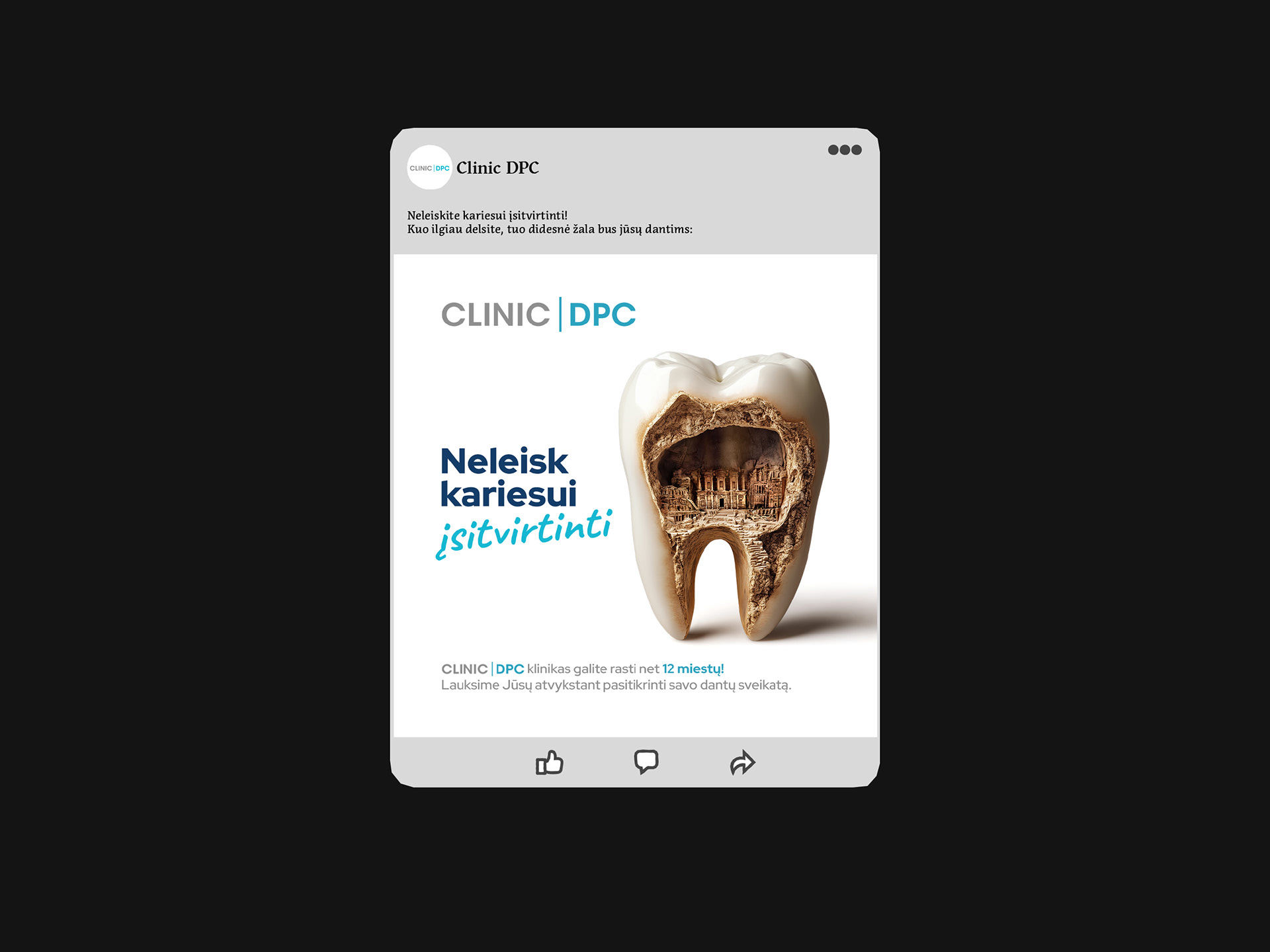 The campaigns explore different directions - from conceptual visuals that highlight the consequences of delayed treatment, to bold character-driven executions used in OOH communication. The result is a set of distinctive visuals that strengthen the brand’s presence while making dental care messaging more accessible and impactful.