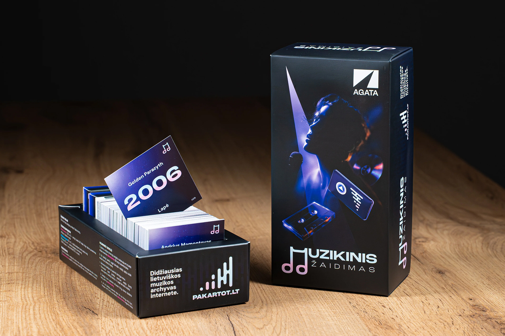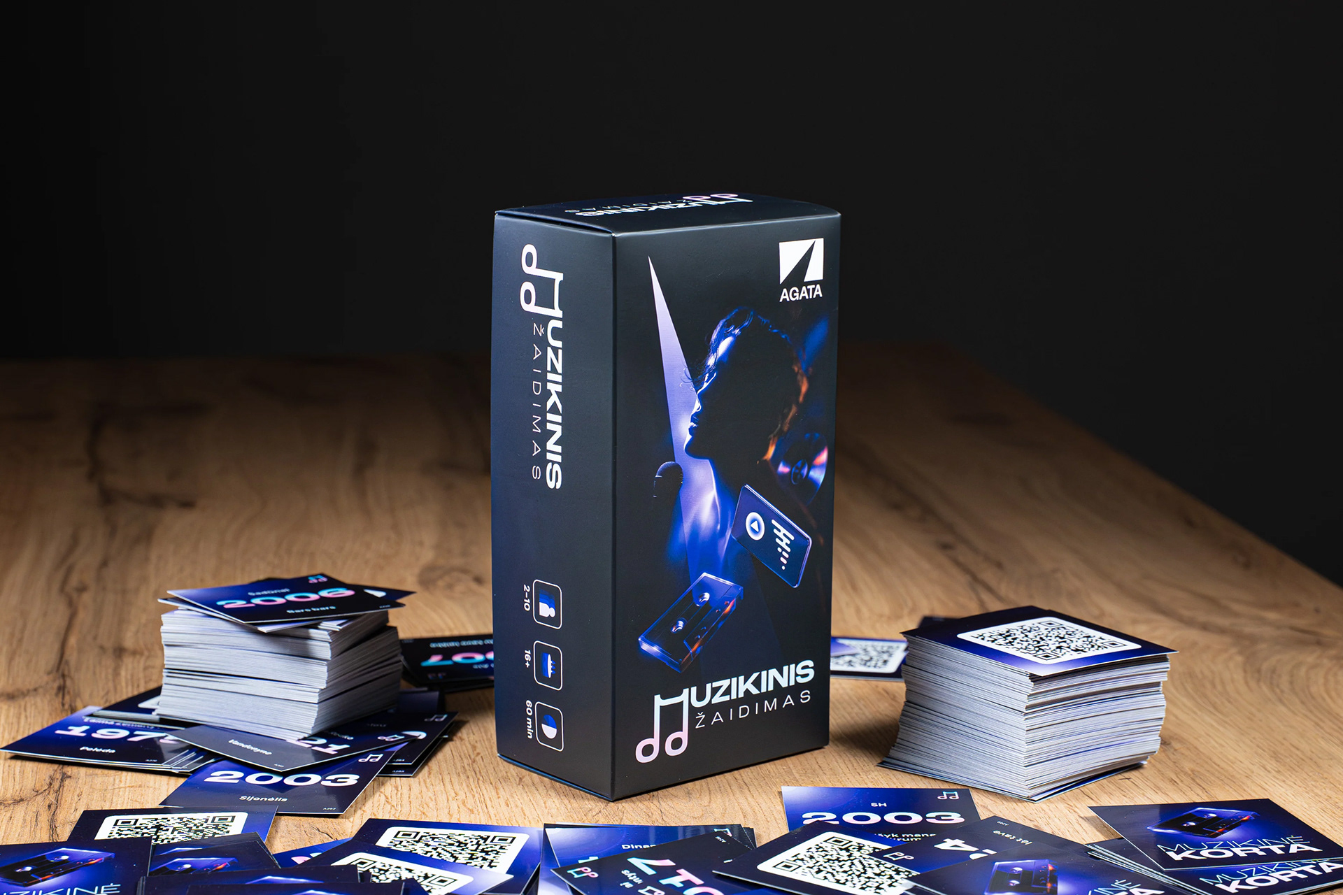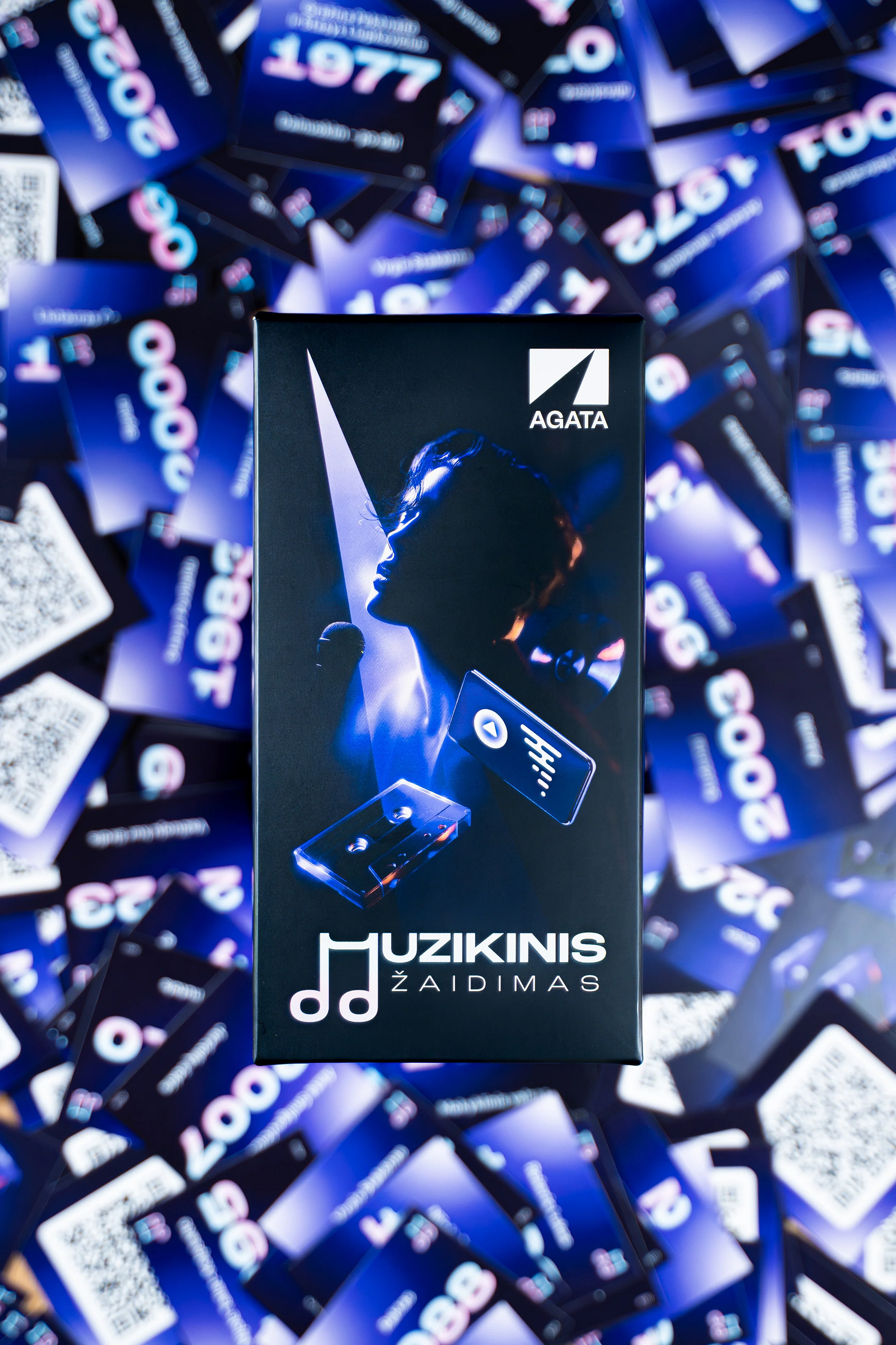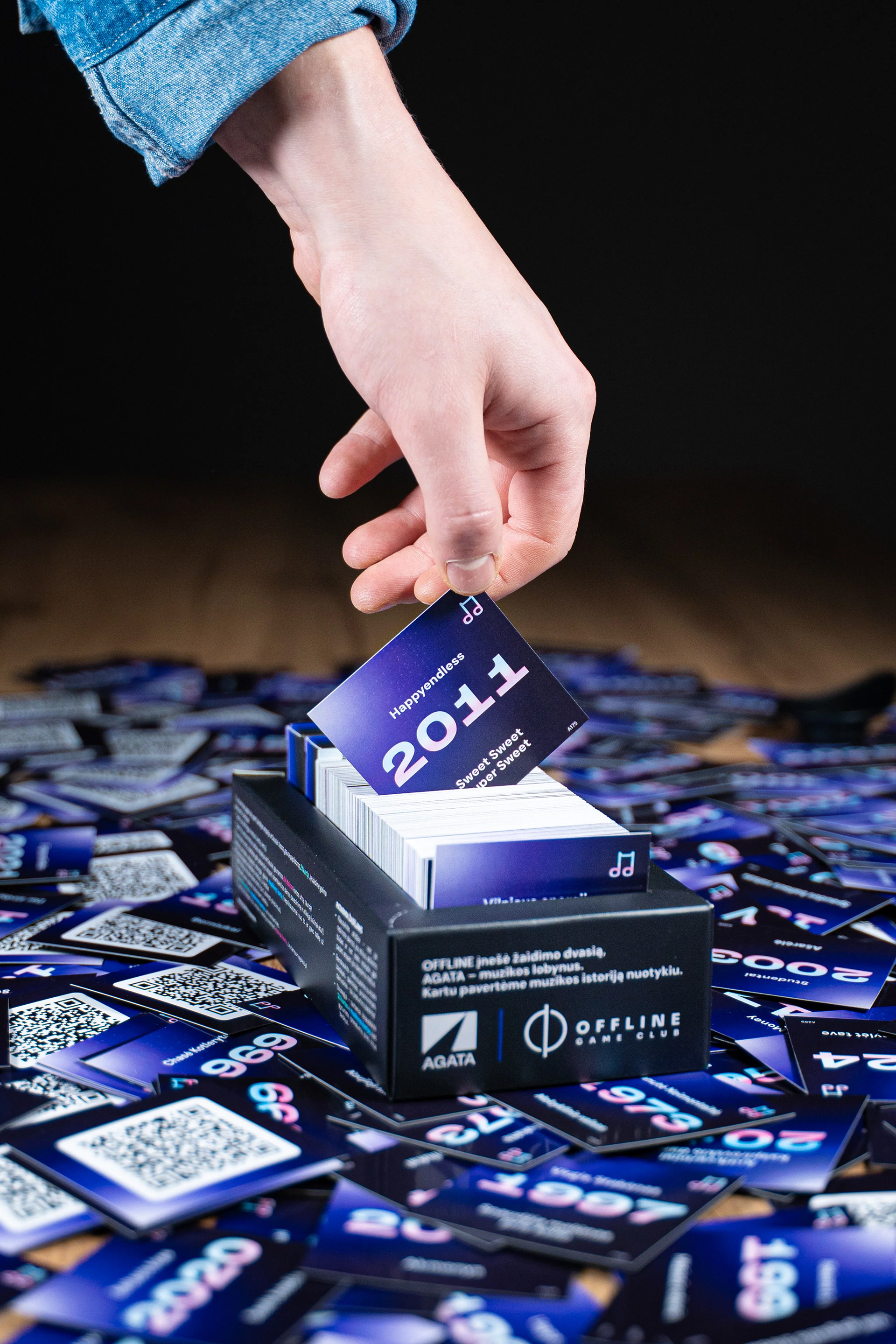 Created for OFFLINE in collaboration with AGATA, the task was to translate something intangible into a physical experience – not just a game, but a format where music becomes interaction. The design covered the full system, from the box and cards to the visual logic that holds the gameplay together, balancing clarity with character.