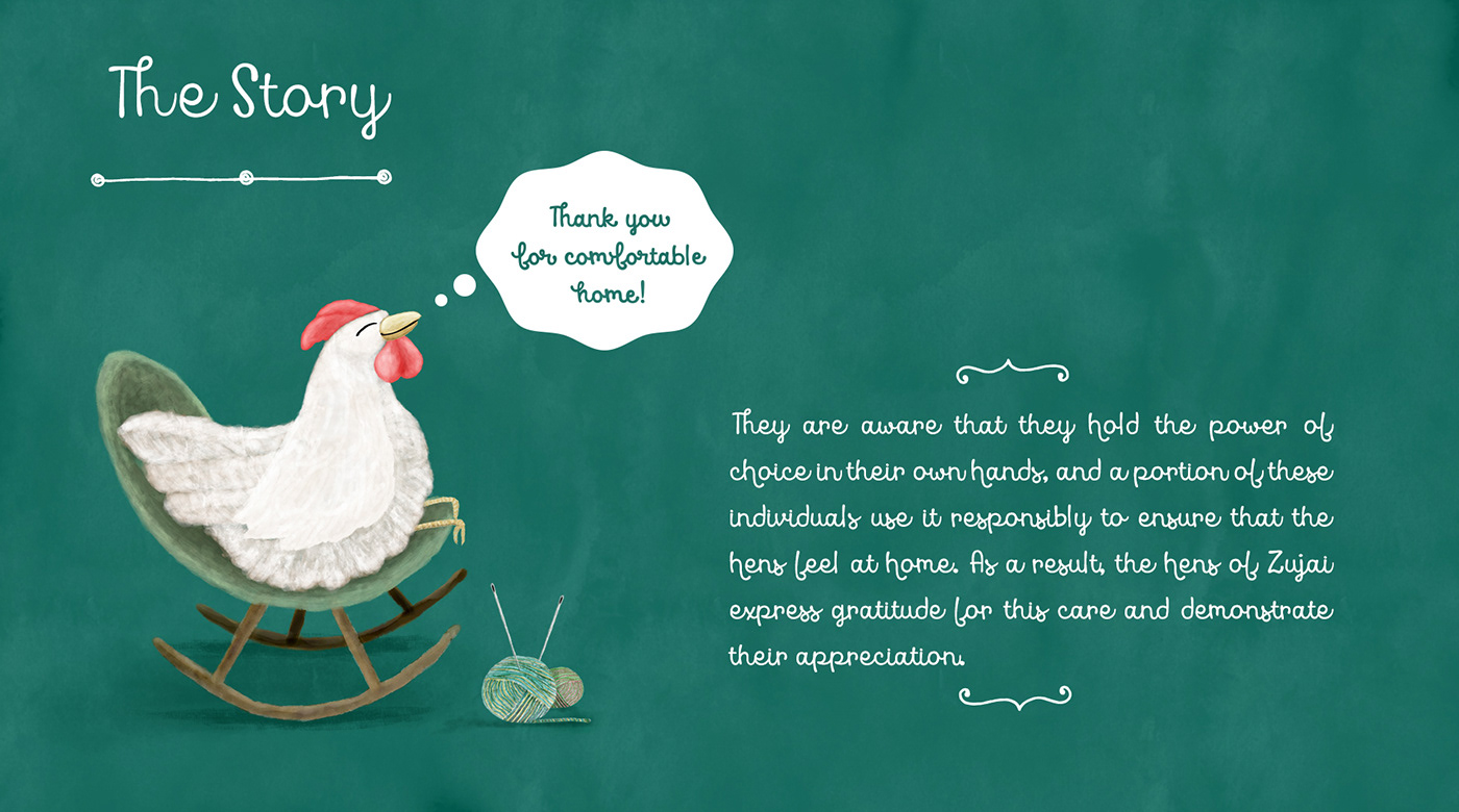 Welcome to "ZUJAI - Grateful Hens Eggs" – where magic and ecological consciousness offer a unique journey. Entrusted with crafting a branding and packaging solution for discerning consumers, I embarked on an innovative quest. Inspired by nature, I created four designs highlighting the bond between happy hens and their exquisite eggs. These embody gratitude, empowering consumers to make conscious choices. As consumers explore the illustrations, they're invited on a meaningful journey. Each box presents a choice between supporting humane practices or settling for less. Through charming illustrations, hearts are touched by the simple truth: the hen's happiness defines egg quality. Join me in this adventure, where every choice carries magic. Experience the joy of ethical consumption with "Grateful Hens Eggs."